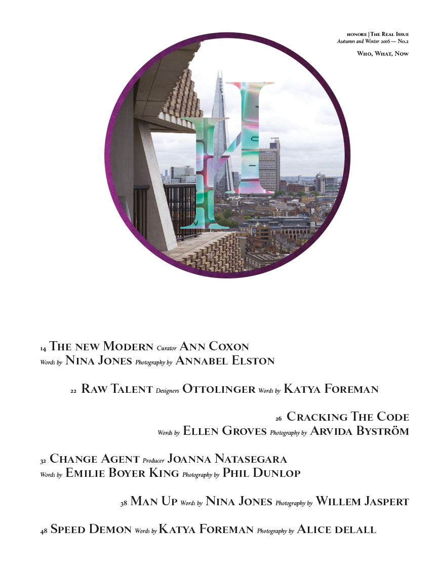 Honore – a new, independent title produced by women for women, representing a fresh voice in the sector. The title is anchored by strong, directional fashion editorials, with its features subjects spanning arts, culture, and politics.